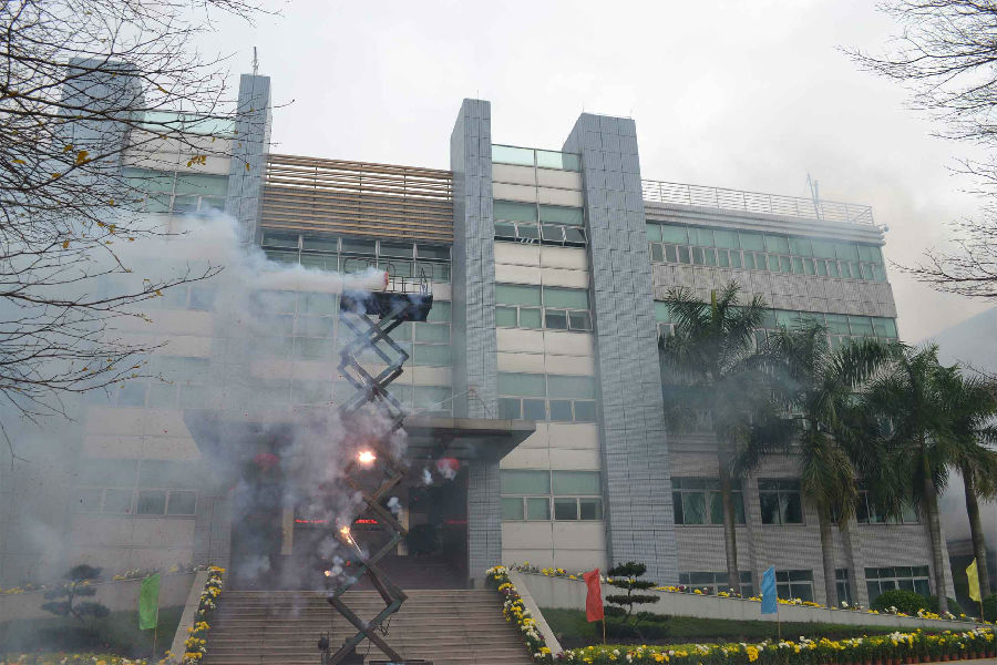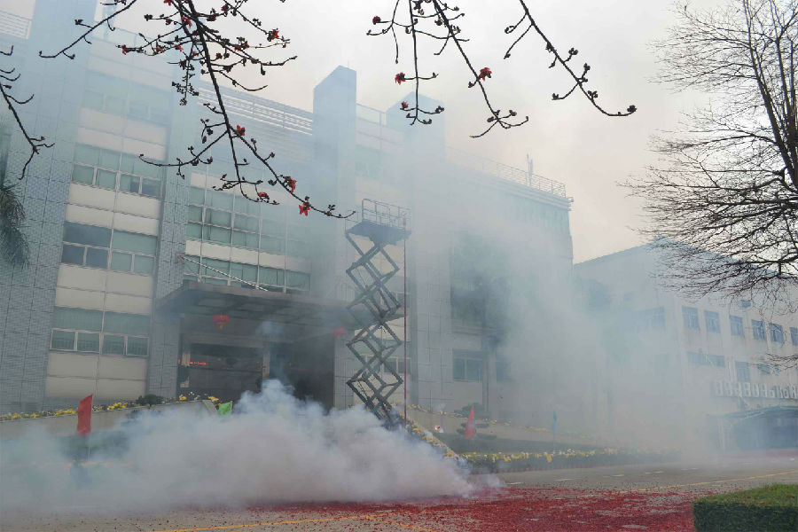 2月26日一大早,順威股份集團辦公大樓門口偌大的廣場花團錦簇,長長的鞭炮早已架好。這時,不少的順威員工已井然有序地圍在鞭炮周圍。大家相互送出新年的美好祝福,熱心等待著祥瑞時刻的到來。