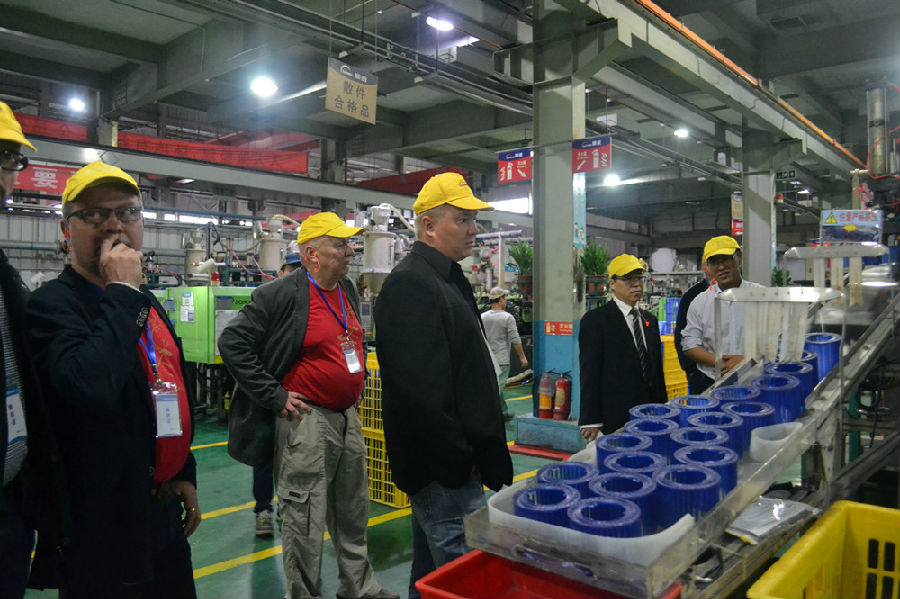 展廳結束后,一行分別到模具分公司及塑料分公司參觀。從大堂到陳列室,再到生產車間各個工段,客商們對公司的生產情況有了更深入的了解。期間對公司的高新技術及高端設備非常感興趣,不時駐足觀察并向接待同事詳細咨詢。