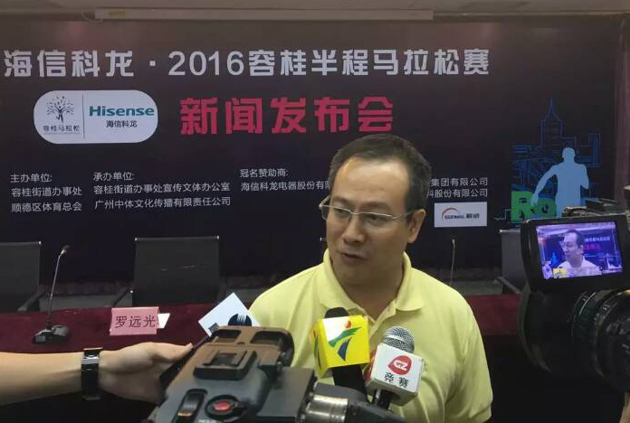 發布會上容桂街道黨工委委員唐天培講到:容桂各項經濟事業的發展已經為本次賽事做好了充分的準備,容桂作為廣東省內著名商標、著名產品最為集中的鎮街之一,本次賽事由海信科龍冠名、順威股份及時代地產作為官方合作伙伴就是最好的證明。