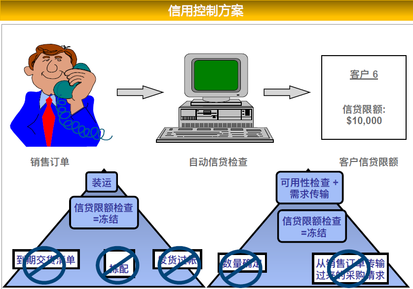 SAP系統(tǒng)提供完善的客戶信用額度控制功能,通過定義信貸控制范圍我們可以把信用控制分配到整個集團或是一個公司代碼下,比如我們可以整個集團是一個信用額度或者是某個公司代碼是一個信用額度。通過信貸控制,公司的應收賬款風險就可以得到有效的控制,同時又不增加銷售人員的工作量。
