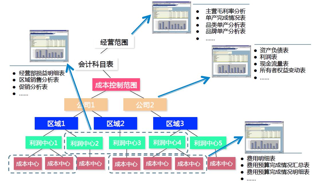 由于財務的控制規(guī)則前移,在開展業(yè)務時已經把后期財務需要的數據錄入到系統(tǒng),月結時財務報表的數據提取就不需要大量的人工錄入。同時SAP提供多維度的財務組織架構,能靈活給出所需的報表。