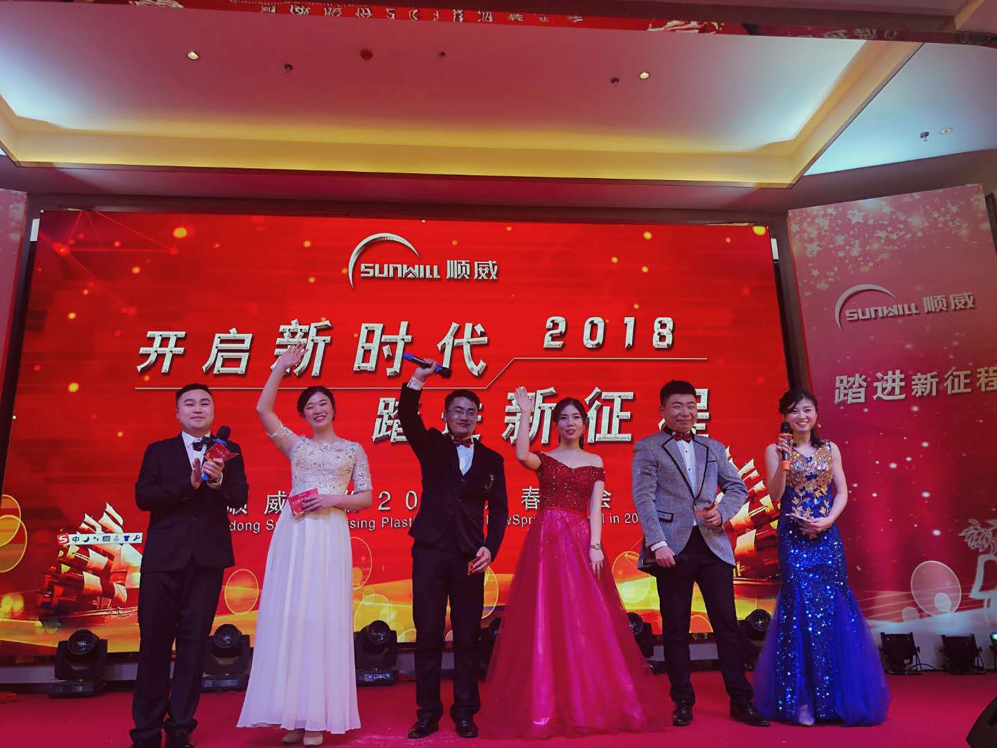又到了辭舊迎新的年終歲末, 這一刻,連接著順威的過去與未來,凝結著順威人一年的收獲與希冀,這一刻,我們順威人有一個共同的情感紐帶。2018年2月8日18:00,順威股份“開啟新時代 踏進新征程”年會盛典在容桂喜悅酒家隆重舉行。集團總部、順德塑料分公司、順德模具分公司、自動化裝備公司、杏壇科技園全體員工、供應商嘉賓、集團領導歡聚一堂,共度聯歡。
