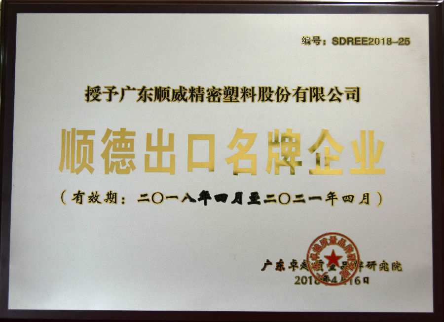 順威股份名列2018年度順德出口名牌企業(yè)榜單